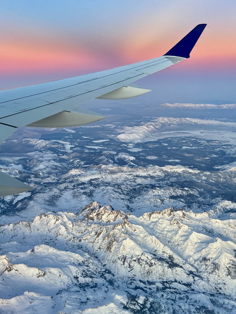 Sunset during flight to SEA and sunrise during flight to SAN.